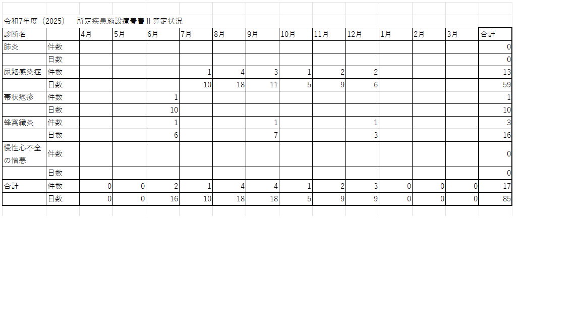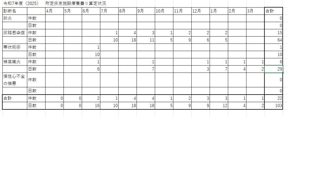 介護老人保健施設において、入所されている利用者様の医療ニーズに適切に対応する観点から、肺炎や尿路感染症などの疾病を発症した場合、施設内におけるこれらの対応について、以下のような算定要件を満たした場合に評価されることとなっております。当施設では、所定疾患療養費を適切に算定し、利用者様の健康及び安心安全な生活へと繋げていく所存です。つきましては、厚生労働省の規定に基づき、所定疾患施設療養費の算定状況について公表いたします。